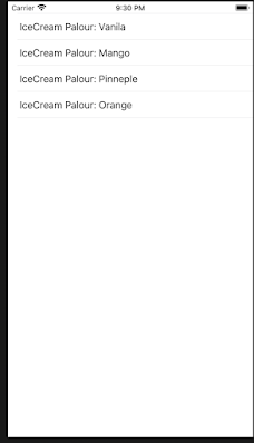 In This Above Example the code defines a IceCream View that will show a name of String which we will show in List with the 4 fixed data  as  IceCream(name: “Vanila”)